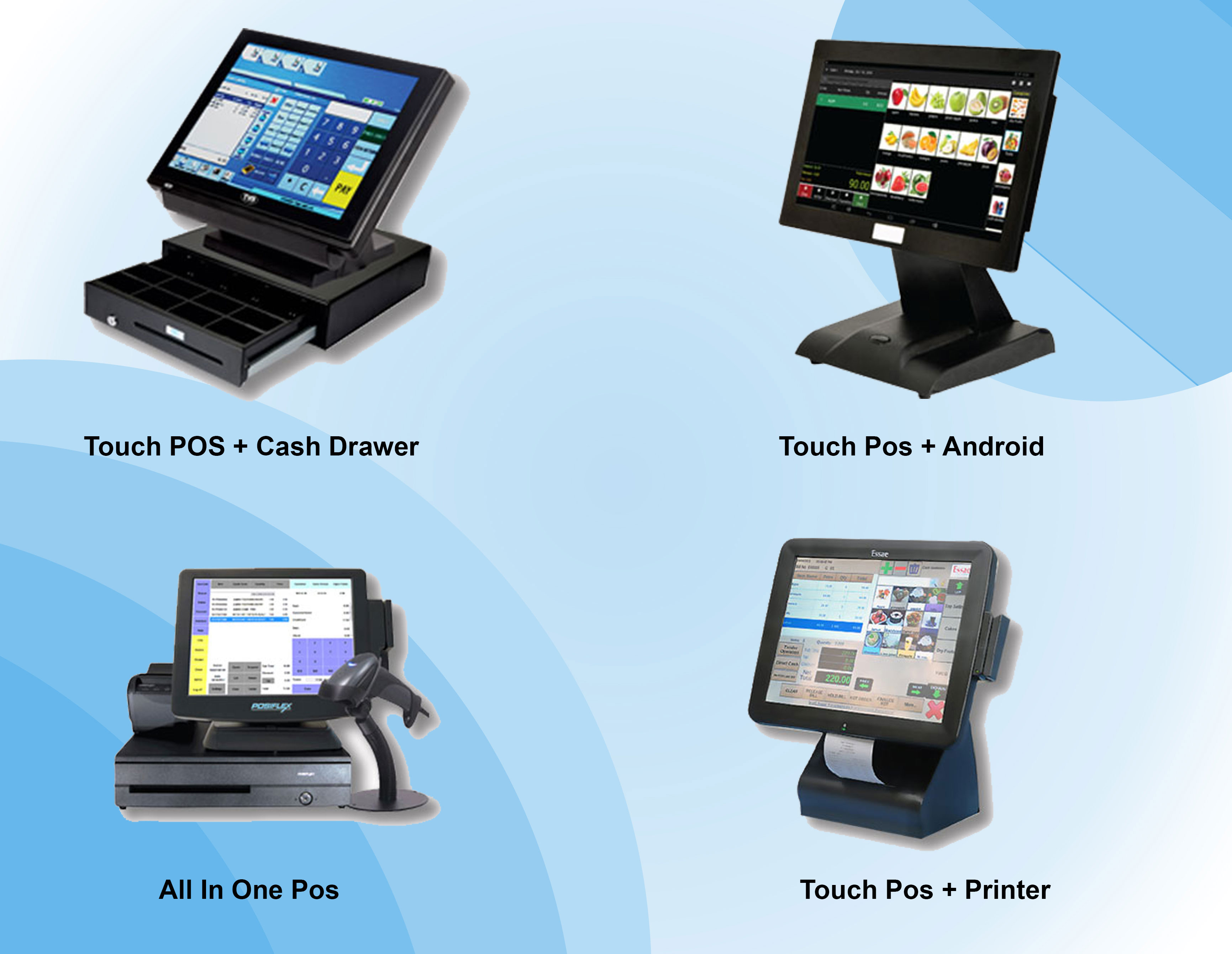 but these systems generally incorporate a touch screen, receipt printer, cash drawer, and magnetic stripe reader.